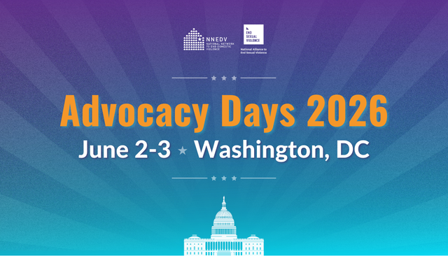 The National Network to End Domestic Violence (NNEDV) is pleased to be co-hosting Advocacy Days again this year with the National Alliance to End Sexual Violence (NAESV) in Washington, DC, June 2-3!