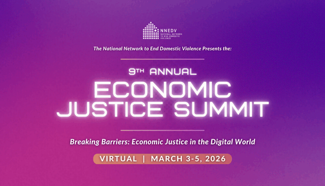 The National Network to End Domestic Violence (NNEDV) will host our 9th Annual Economic Justice Summit virtually March 3-5, 2026. Click here to register now!